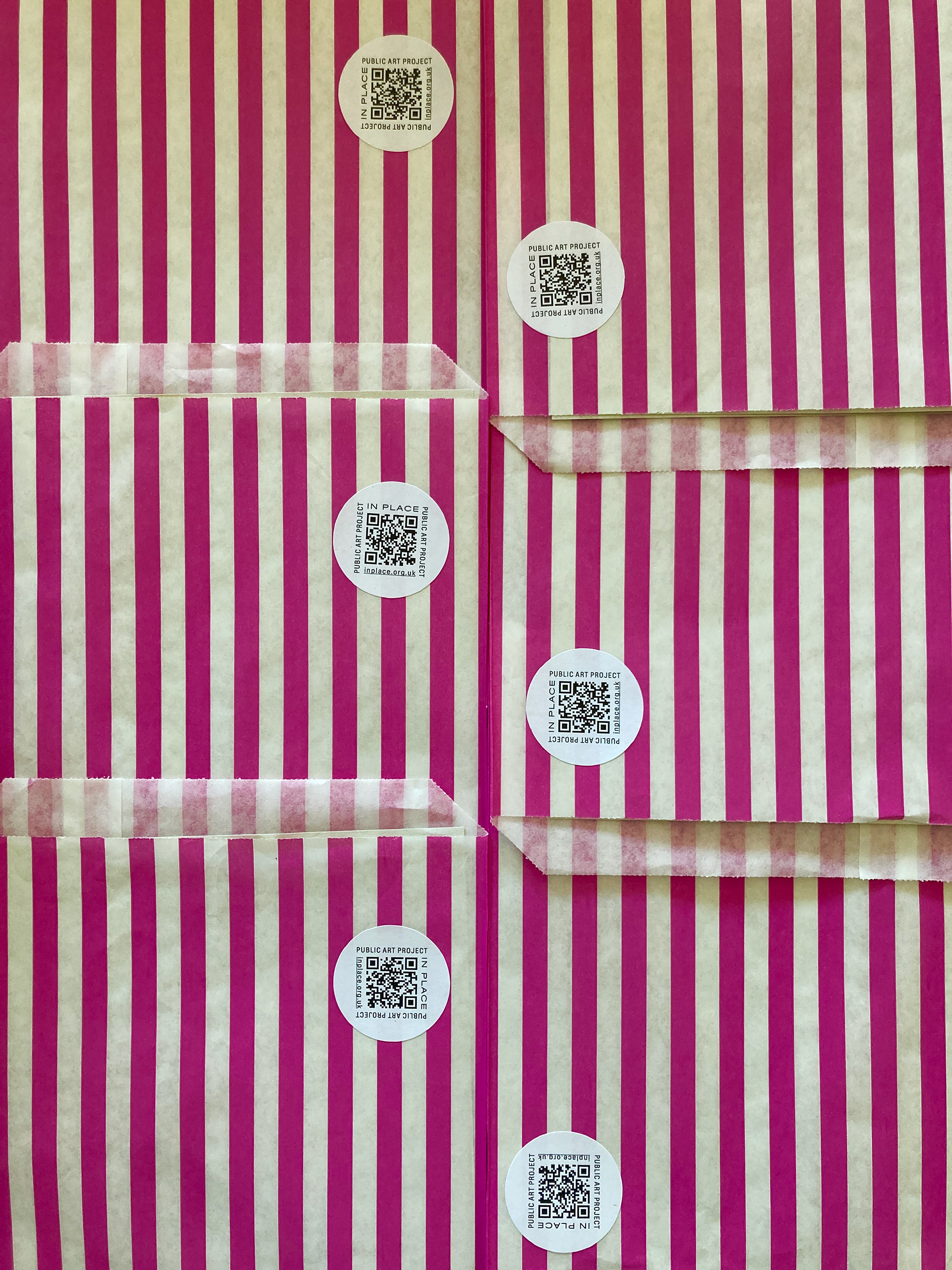 “Walking back from the garage after dropping off her car for repair, Beth wandered into and around the Triangle. Intrigued by the artworks, she found out more about the history of the place and its community, meeting and talking to some of the residents. Drawn to the closed corner shop and finding little in the library, she posted a photo on Facebook, and asked for people’s memories of it. She found out it had been a general store, a grogg shop, a tattoo parlour, a sweet shop and a second hand shop. Beth wanted to draw attention to the memories of the people who would have crossed the threshold of the shop over the years, the repetition of their thoughts, moods, feelings and lives, as well as highlighting a space that could be a valuable community asset, but which has remained closed for over 20 years. Her artwork reflects the repetition of people going in and out of the shop whilst playfully referencing her own childhood memories of buying a quarter of “rhubarb and custard” sweets from a similar sweet shop in her hometown.”